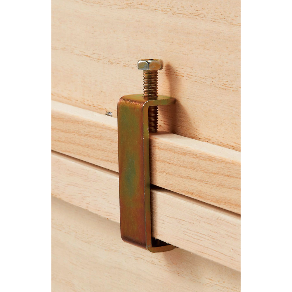●転倒防止用にコの字金具が付属されています。前面からは見えないように裏側から固定する仕様です。