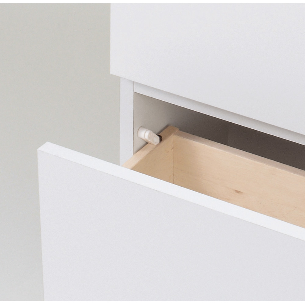 引き出しは抜けを防ぐストッパー付き。