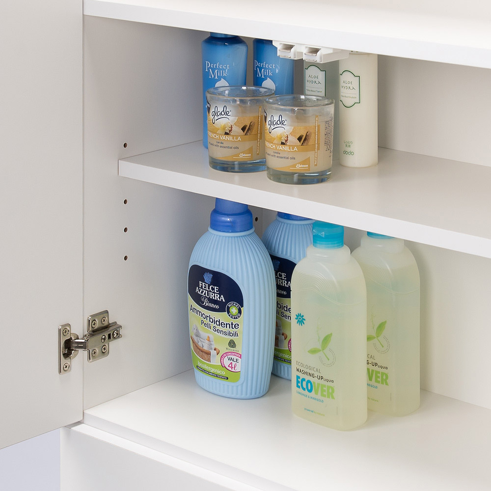 扉の中の収納棚は3cm間隔で高さ調整ができます。