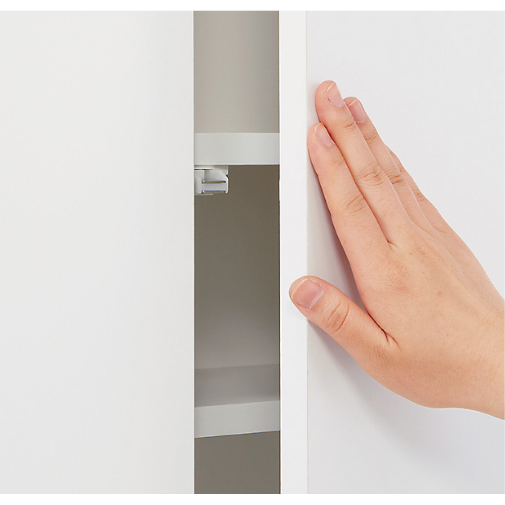 扉は見た目がすっきりとした取っ手のないプッシュ式。忙しい時も片手で開きます。