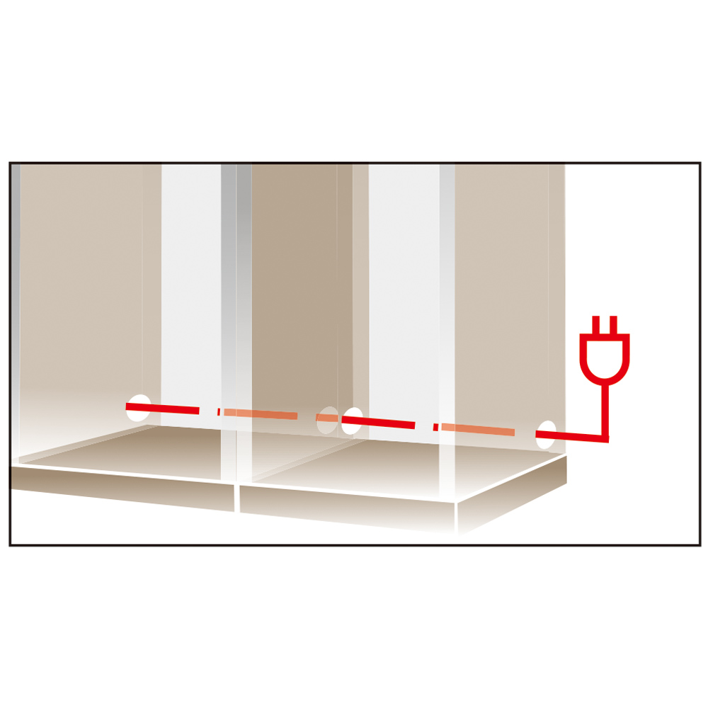コードスッキリ内部配線孔。アイテム間をつなぐ側面配線孔はコード類を露出させずコンセントへ。壁面にぴったり設置可能です。