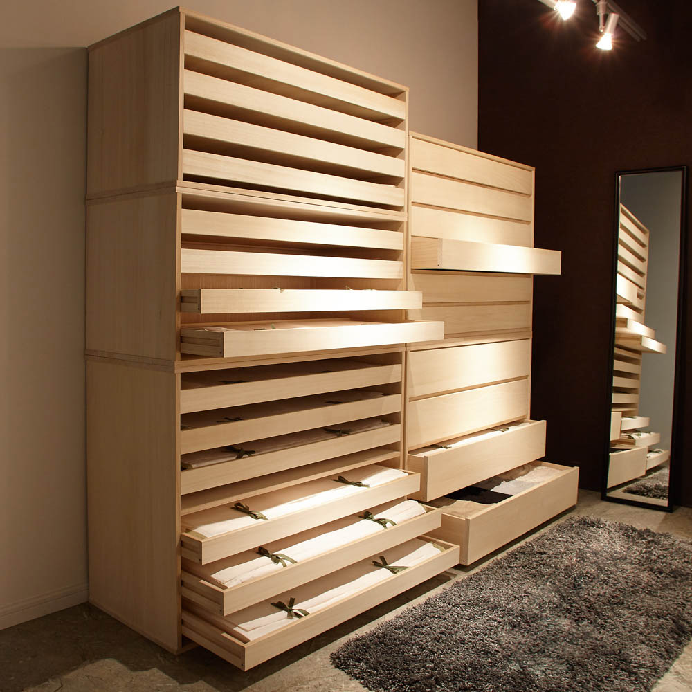 ●タンスのサイズはシリーズ品共通の幅100奥行44高さ75cm。マンションなどの省スペースクローゼットでも収まる大きさです。収納物に合わせて選べる全4シリーズ