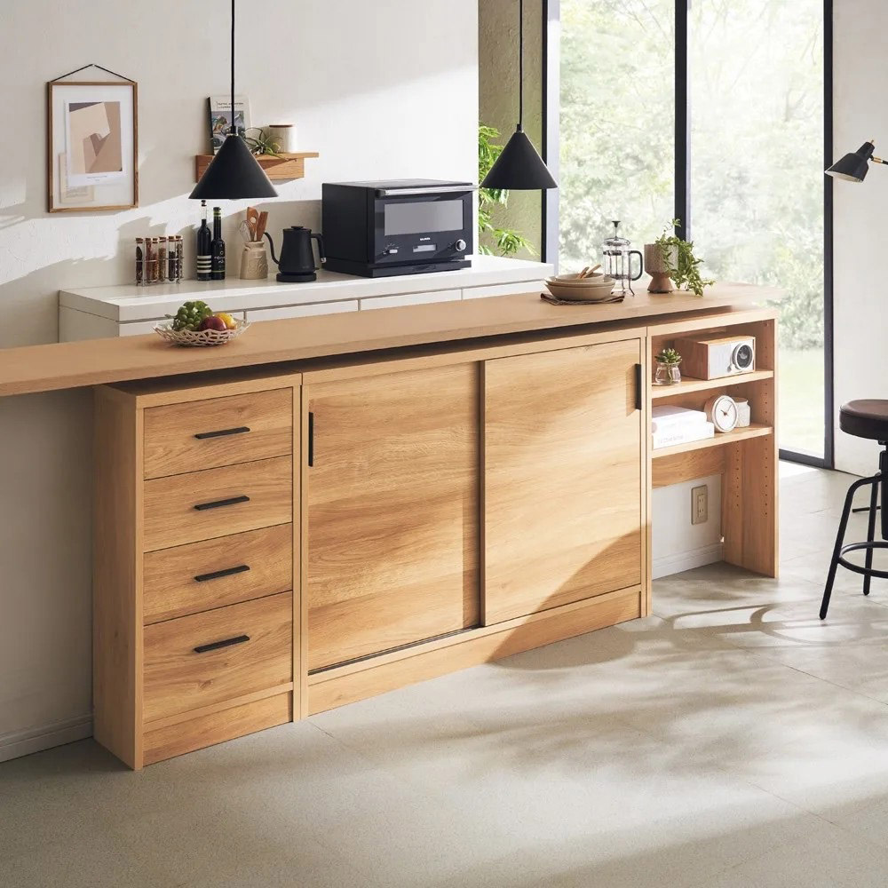 ダイニングテーブルの高さに合わせれば、テーブルの延長上でフラットにお使いいただけます。高さ70cmは、一般的なダイニングテーブルに合わせた使いやすい高さです。