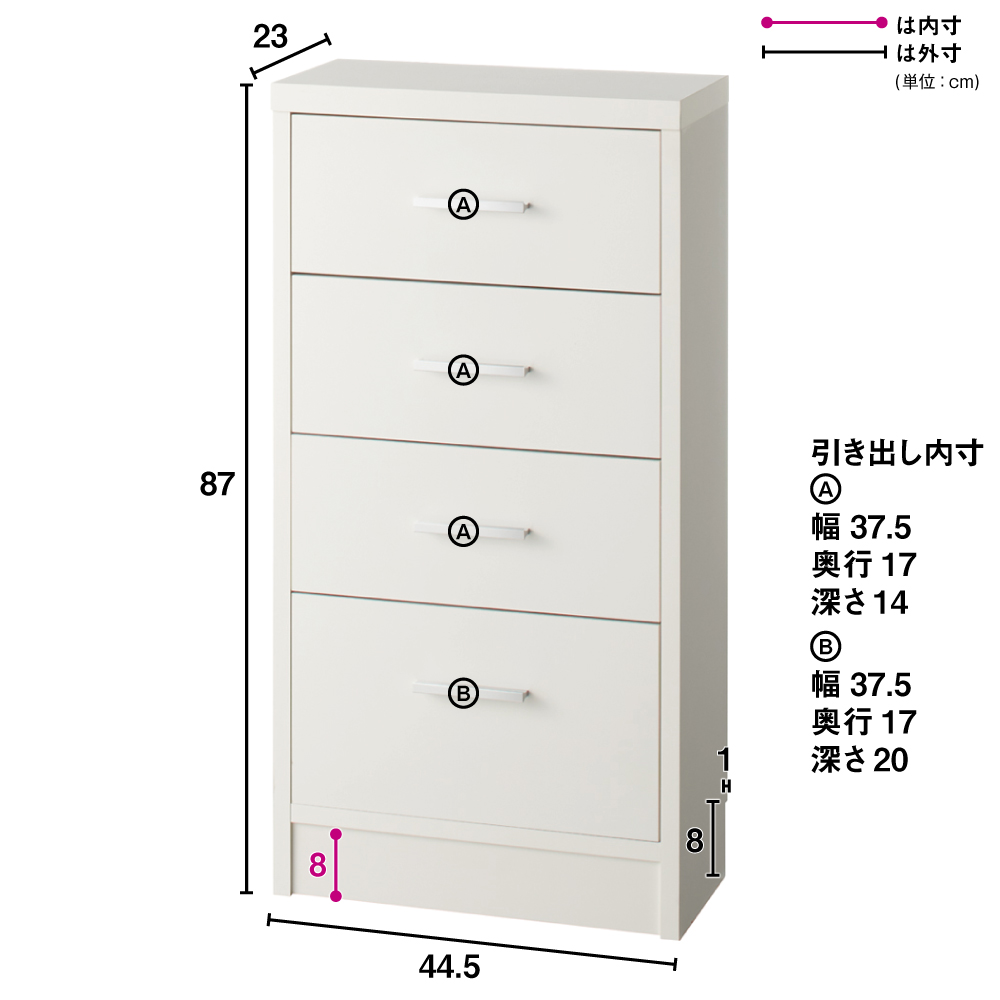 • 引き出しにストッパー付き。引出しの抜け落ちを軽減します。(最下段の深引き出しは除く。)