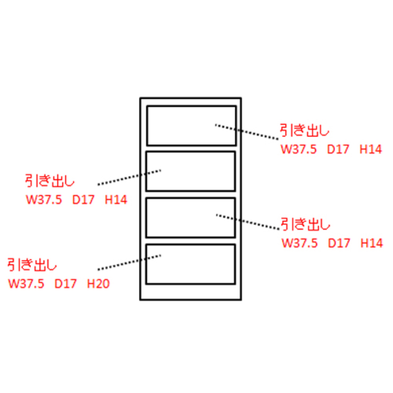 使用例:奥行29.5高さ87cmタイプ 左から引き出し、収納庫(幅90cm、幅120cm)