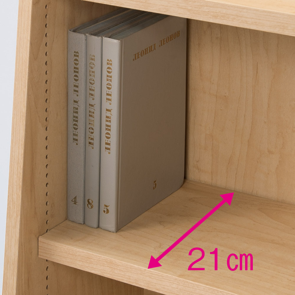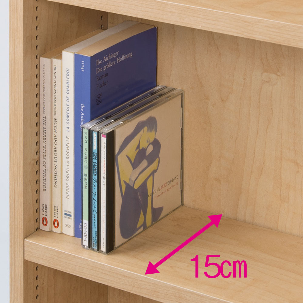 ◆可動棚板は1cm刻みの細かい間隔で調節が可能で、本のサイズに合わせてすっきり無駄なく収納できるのもポイントです。