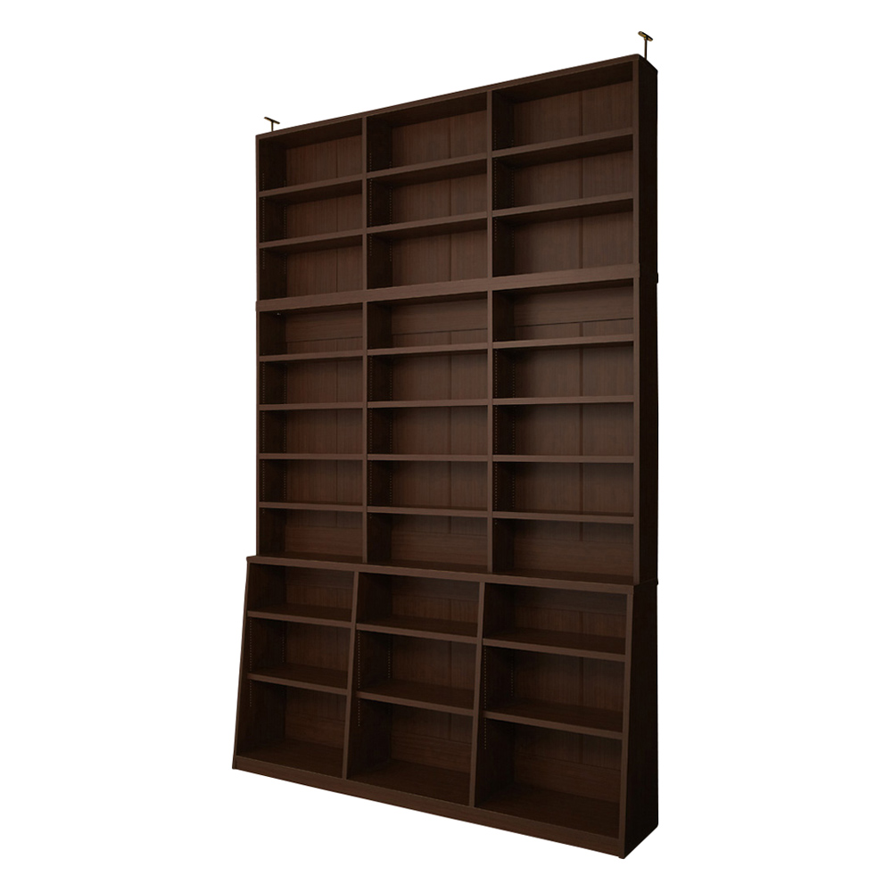 【幅118cmタイプ】幅118奥行29.5突っ張りタイプ本体高さ232.5cm、天井対応高さ238~250cm、可動棚板16枚付き