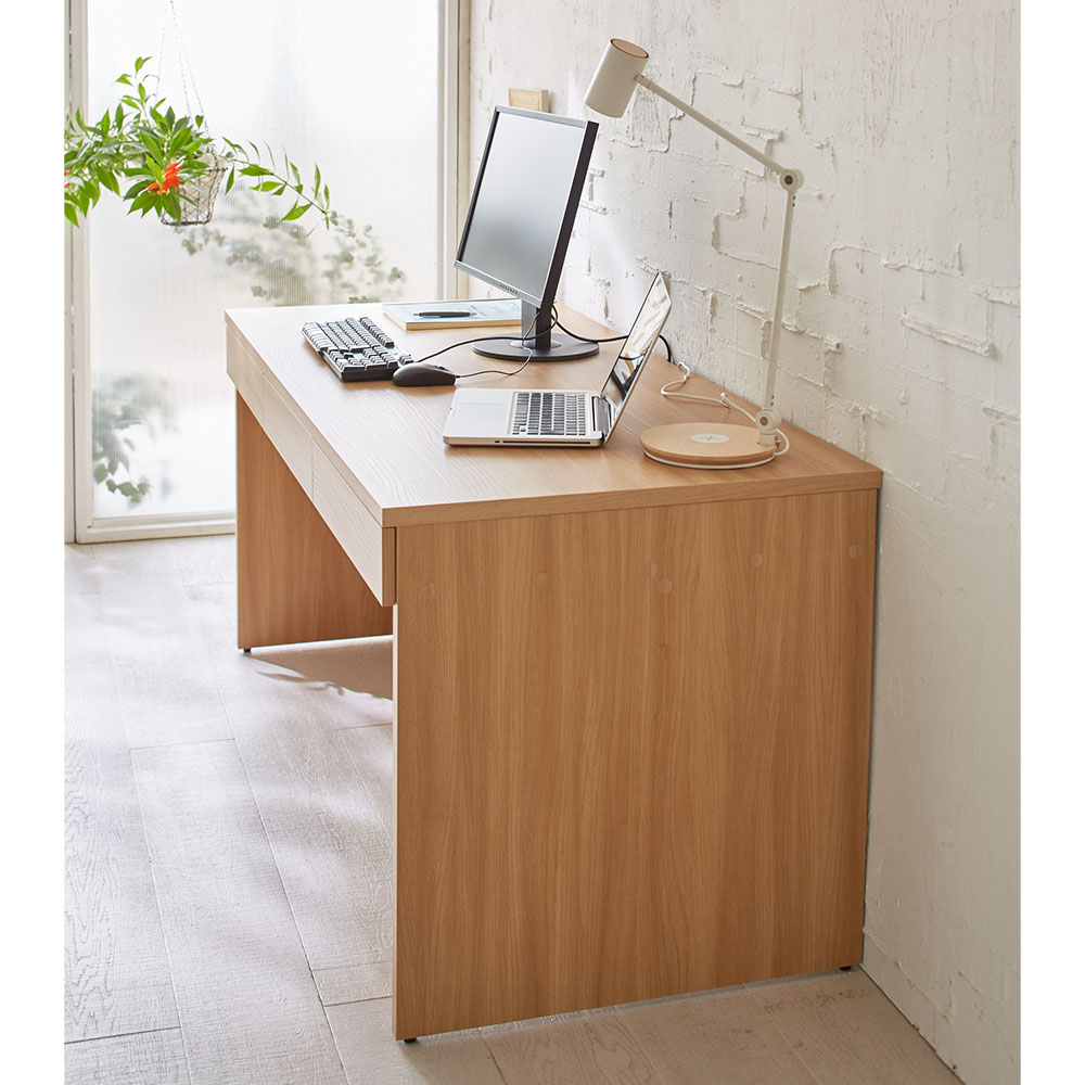 奥行たっぷりの奥行70cmタイプはパソコン作業も書き作業も広々ゆったり!(イ)ナチュラル ※コーディネート例 お届けは幅120奥行70cmのデスクです。