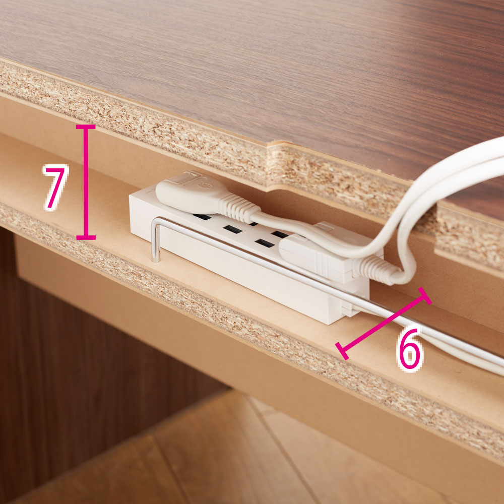 デスク天板奥に配線かきこみが施されているため、ケーブルの整理が簡単。これにより、作業スペースが広く使え、デスク周りが常にすっきりするので、快適な作業環境を維持できます。