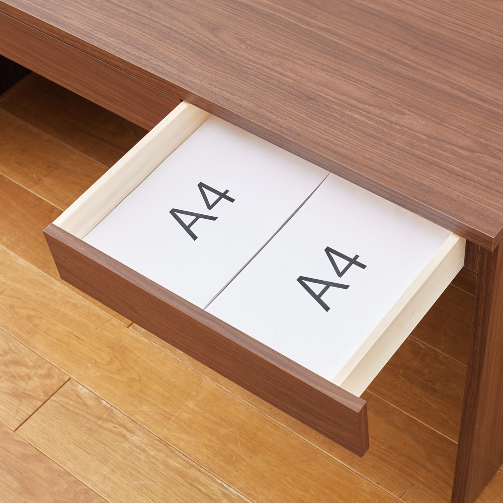 デスクの引き出しは余裕を持ってA4サイズの書類を収納できるため、大切な資料や書類をすっきりと整理できます。頻繁に使う書類もすぐ取り出せるので、作業効率を高められます。