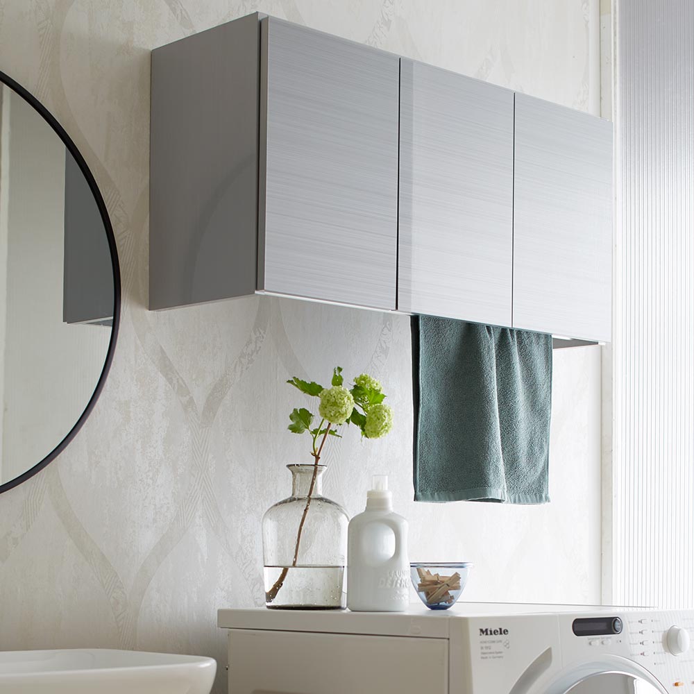 • 洗面所の壁面や洗濯機上、トイレ上に造りつけのようなランドリー収納を。 使用イメージ(ア)ヘアラインシルバー