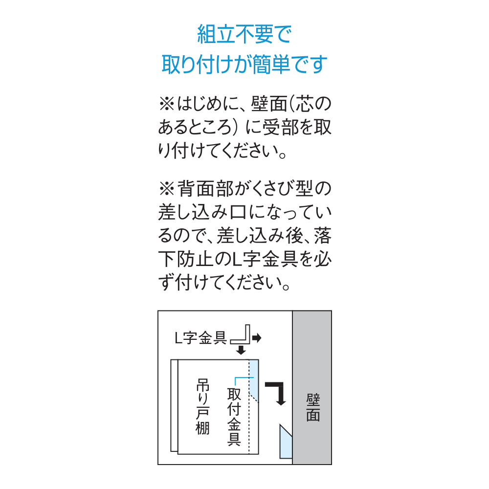 ●落下防止のL字金具付きで吊り戸棚をしっかり固定できます。