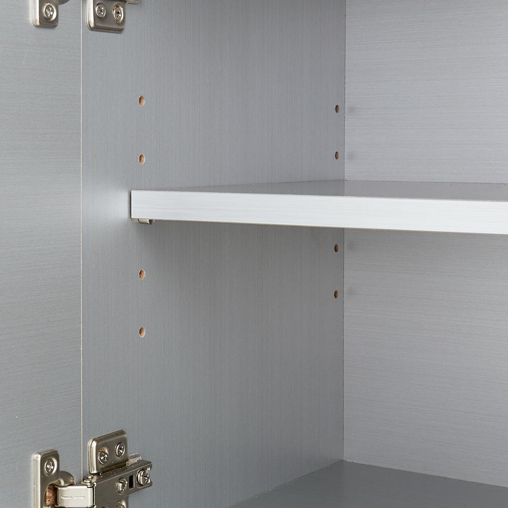 ●扉内は3cmピッチで調節できる可動棚を採用。収納物に応じて高さが変えられます。