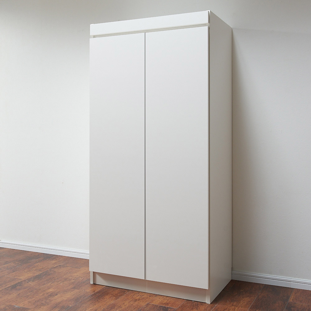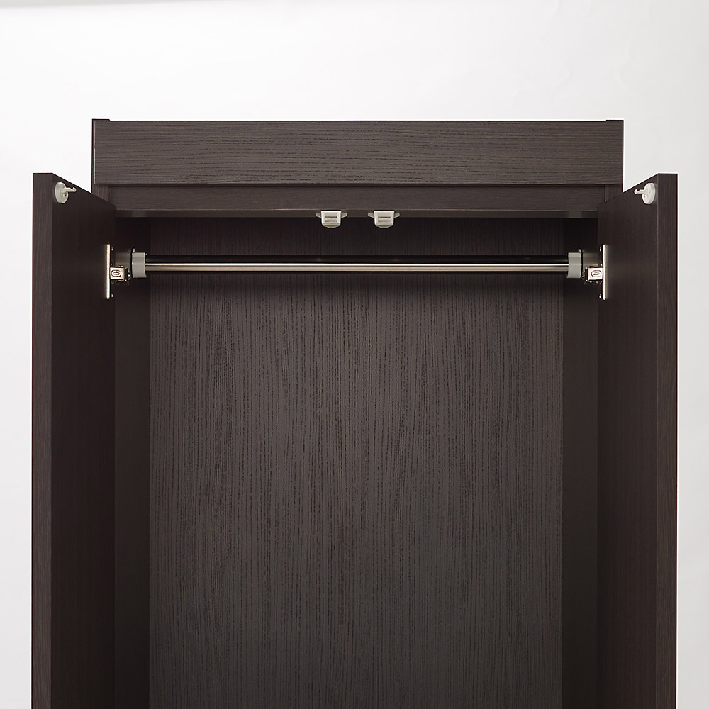 扉はプッシュラッチ式を採用。また、収納部ハンガーバーの耐荷重は約15kgです。