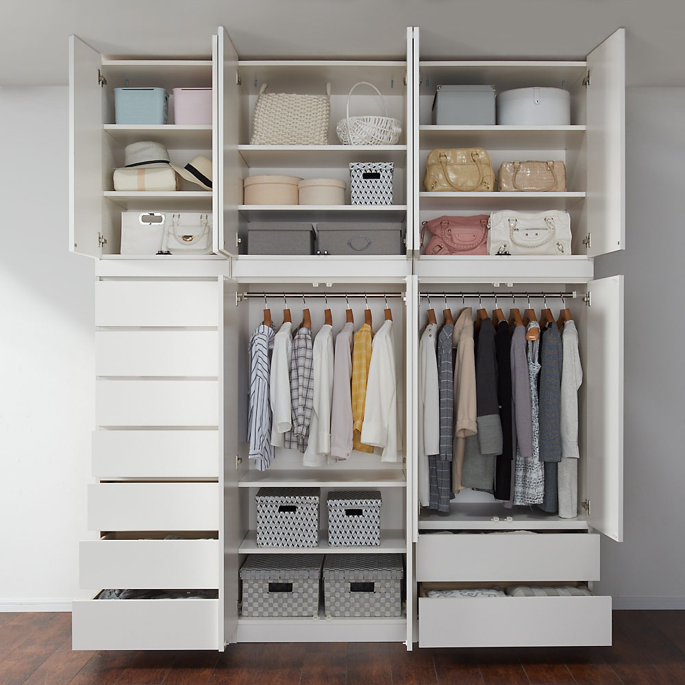 コーディネート例(ア)ホワイト ※シリーズ商品の組み合わせで壁一面を壮大なクローゼットにすることもできます。