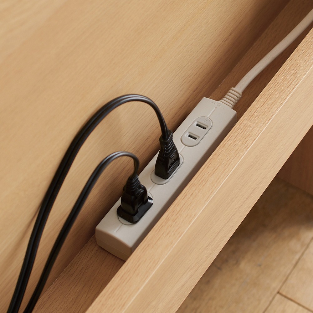 ●天板には2口コンセント付きで、パソコンやタブレット、スマホの充電などに役立ちます。