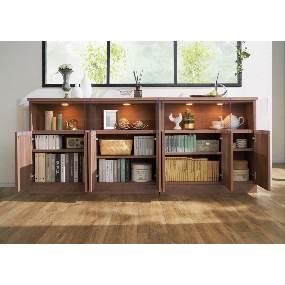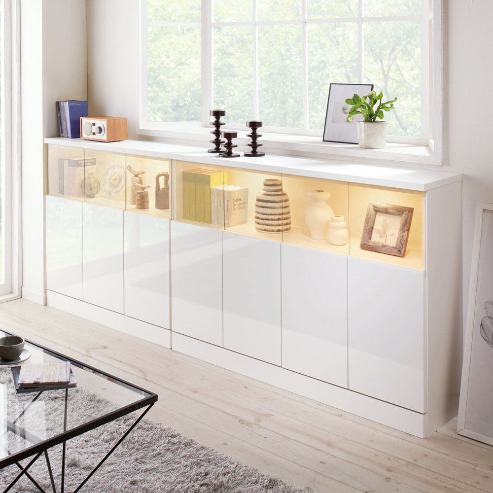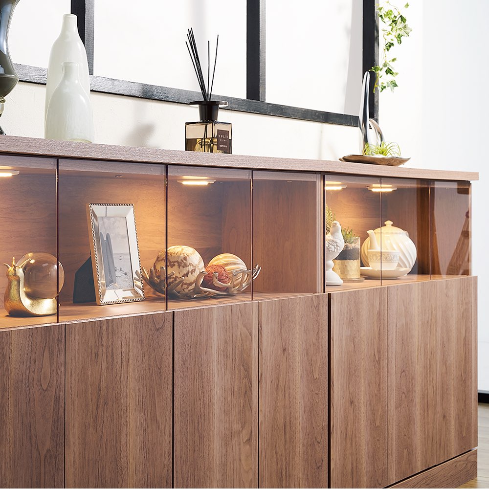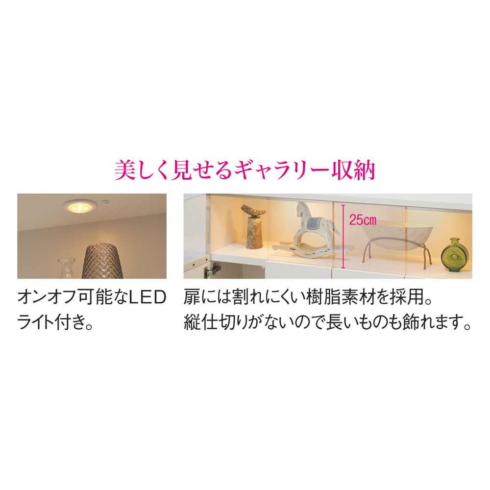 LEDライト×クリア扉で美しく見せるギャラリー収納シリーズです。