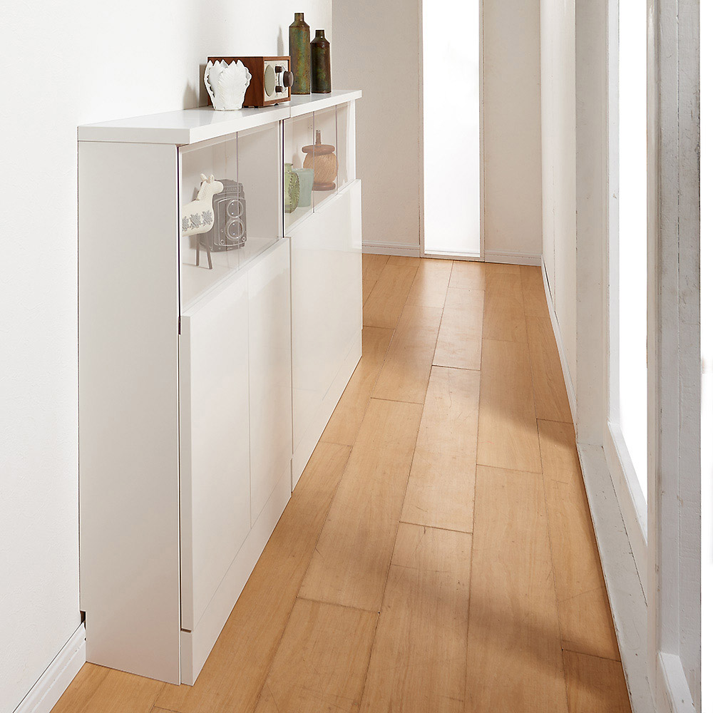 コーディネート例(ア)ホワイト 薄型タイプは廊下やせまい通路にぴったりのサイズ感です。導線を気にせず設置ができます。※写真は奥行20cmタイプです