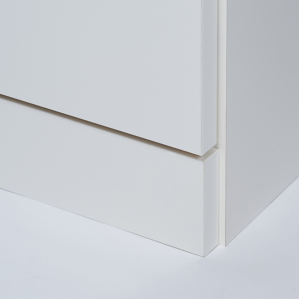 背板には1×8cmの幅木よけがついています。ご自宅の幅木も気にせず壁にきれいに付けられます。