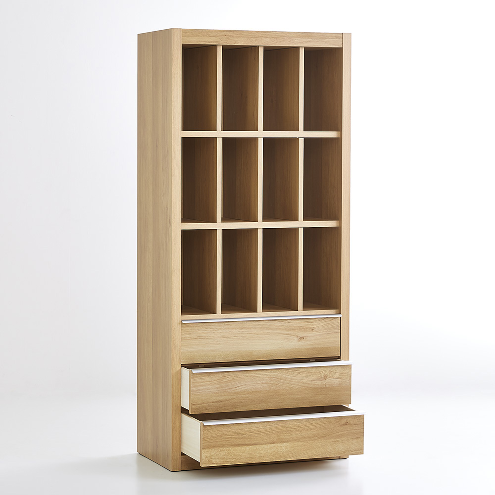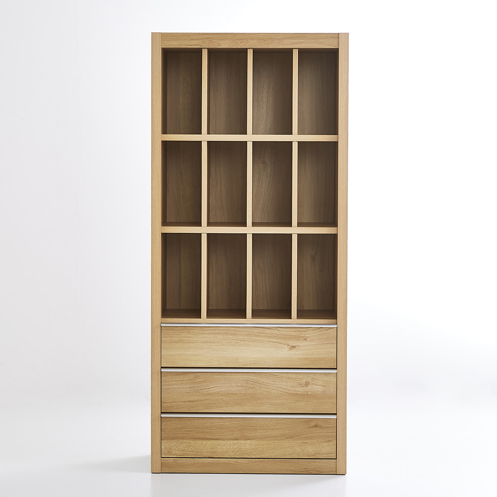 ■オープンな収納ながら、どっしりとしたフレームの存在感とリアルな木目調の素材感で、生活感を感じさせないシンプルモダンなインテリアを演出します。