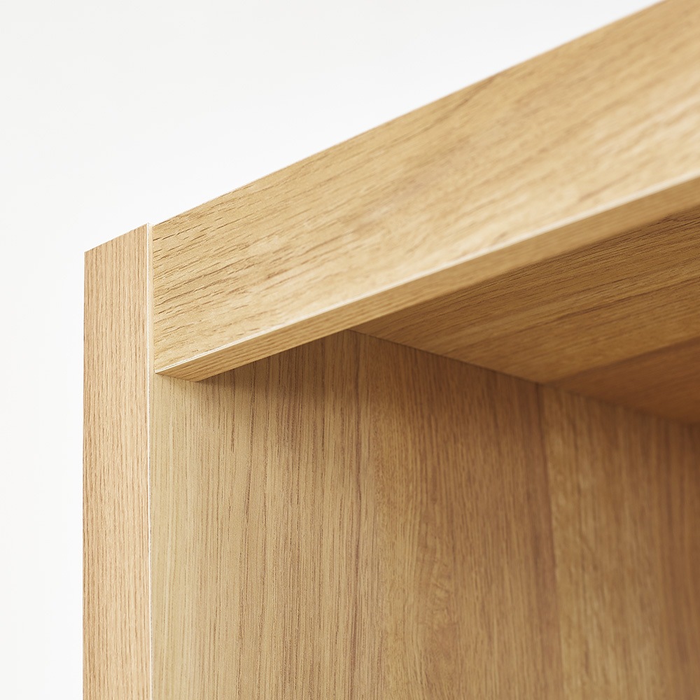 ■フレームに厚みを持たせることでヨーロッパや輸入住宅で見られるようなクローゼット収納が叶うシリーズ。■表面材には住宅建材ににも使用されるオーク天然木の柄をリアルに再現した高級な面材シートを採用しました。