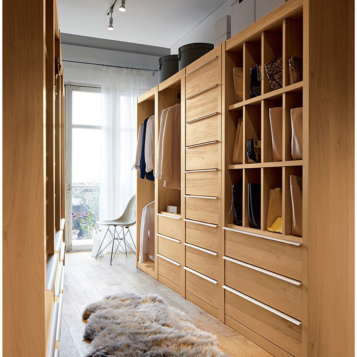 高級感と重厚感を醸し出すオーク無垢材調のヨーロピアンな衣類収納ユニットシリーズ