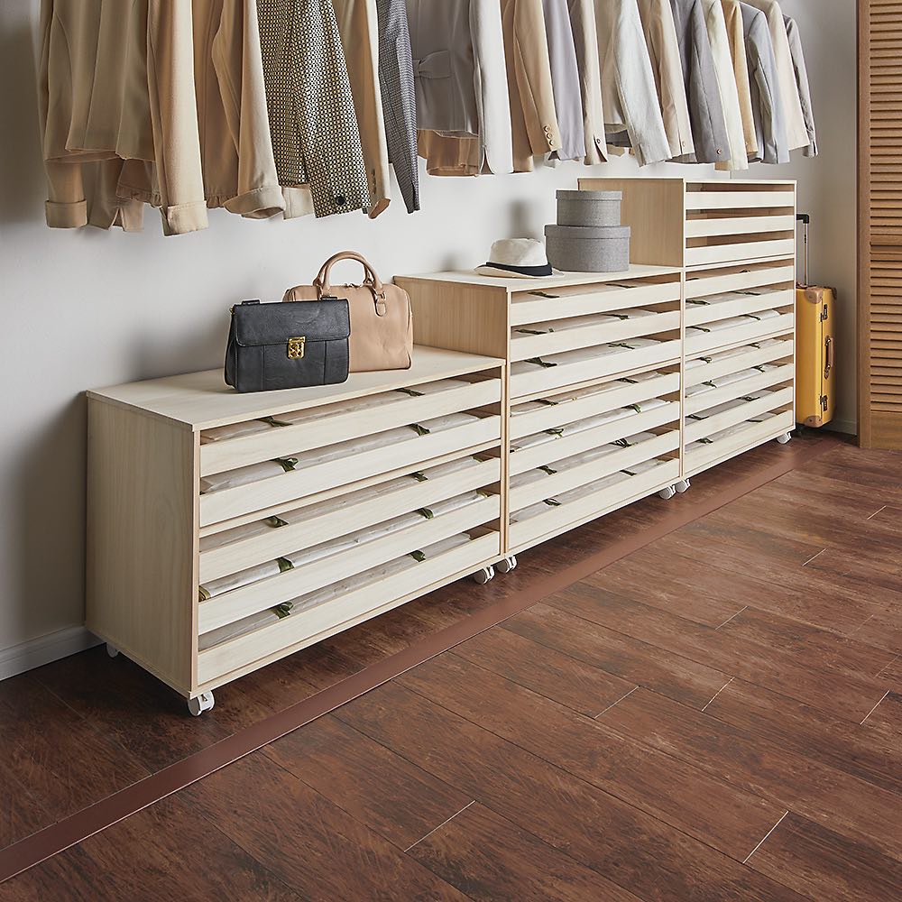 クローゼット内を有効活用できるキャスター付きのワゴンタイプ