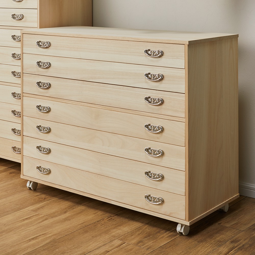 【キャスター付きでどこでも使える】総桐着物収納クローゼットワゴン 浅引き7段・高さ80.5cm 押入れ クローゼット収納 衣類収納 590225