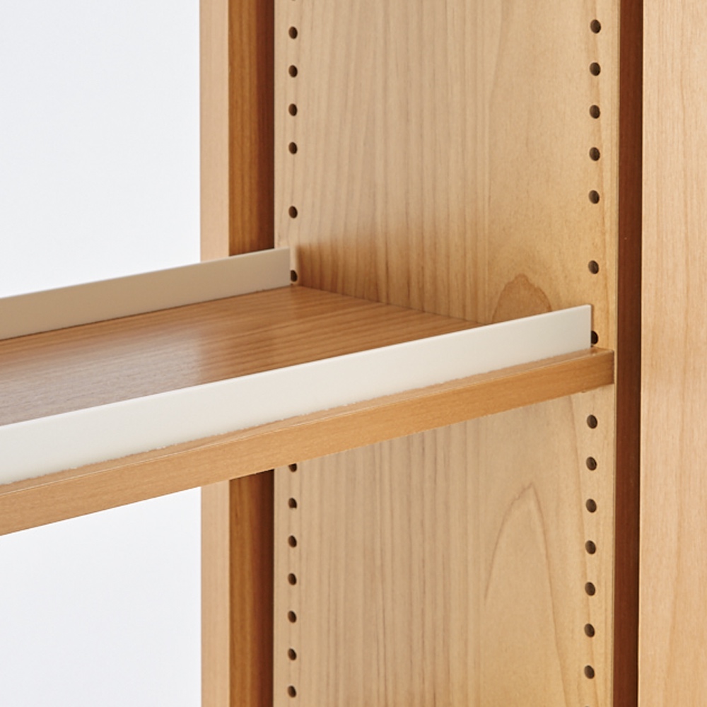 【こぼれ止め】可動式のこぼれ止めで落下防止。こぼれ止めは書棚設置場所に合わせて左右どちらにも設置できます。