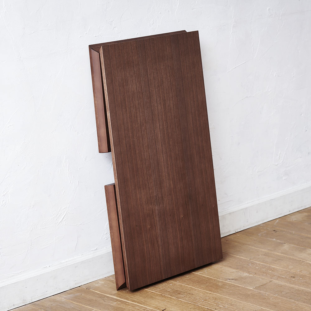480年以上の歴史を持つ家具の産地福岡県大川市で、三代にわたりテーブル一筋に取り組む熟練の家具職人が、1点1点丁寧に手作業で作っています。細部にわたって折りたたみ式とは思えないほど美しい仕上げです。