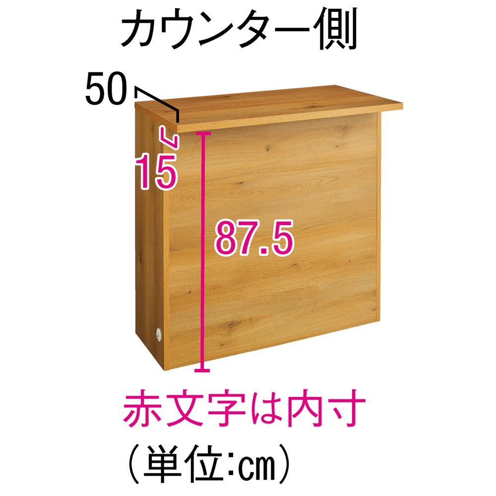 ■素材:天板・収納側の前面…強化紙化粧合板、側面・カウンター側の前面…化粧合板