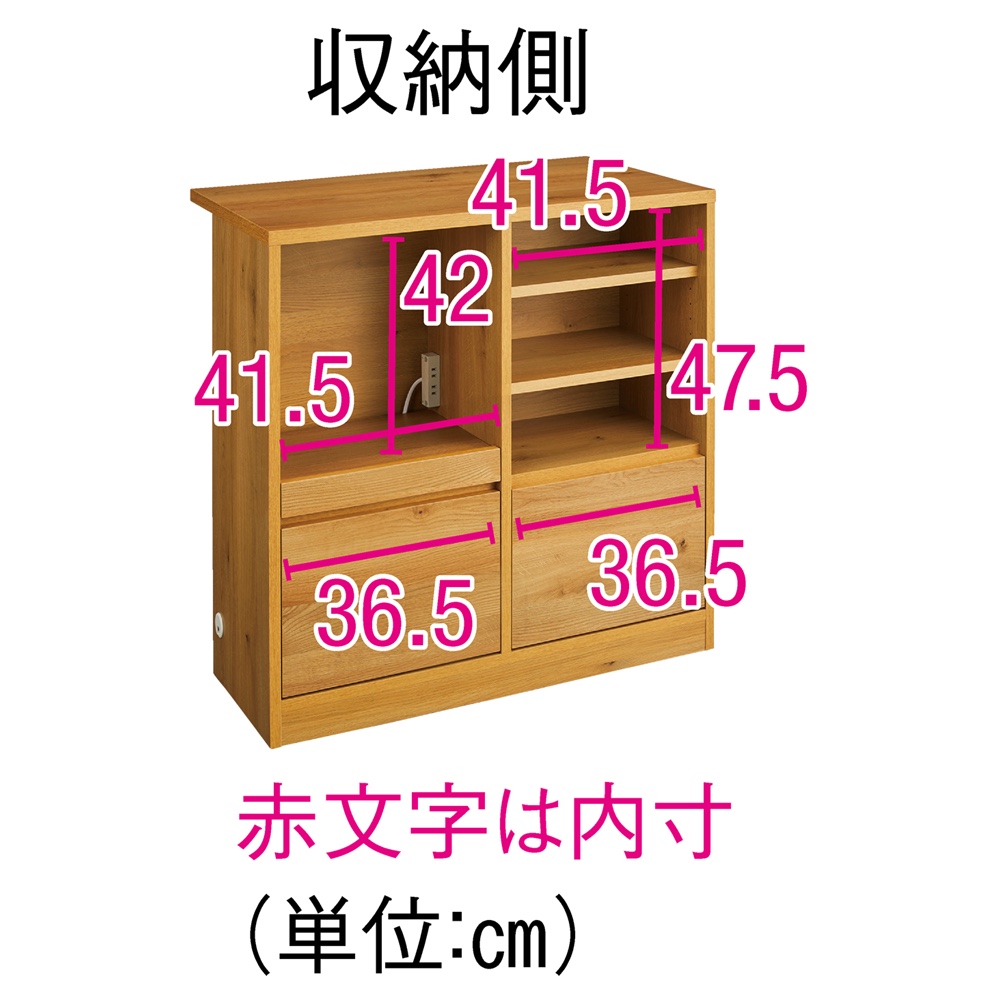 詳細サイズ【収納側】 内寸:棚収納部=奥行29.5cm・家電収納部=奥行29cm・引き出し=奥行22.5cm高さ26cm