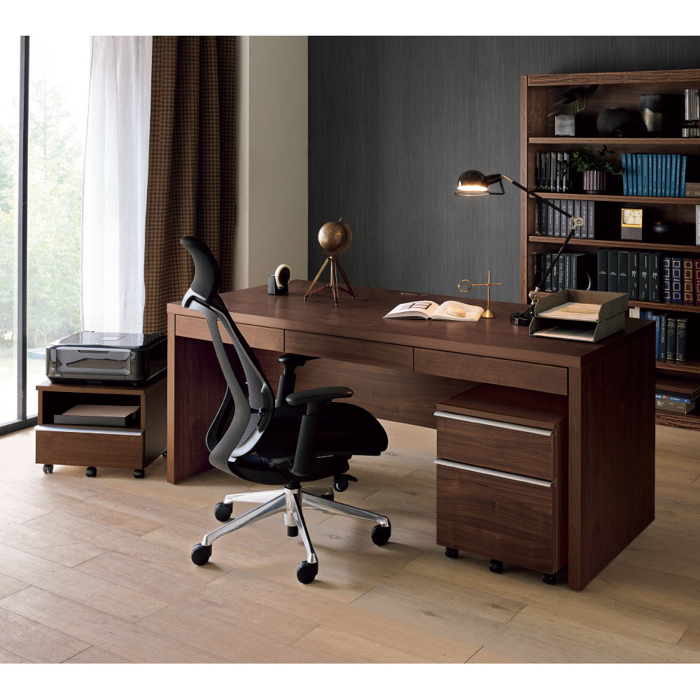 高級感と重厚感を醸し出すウォールナット無垢材調のヨーロピアンなデスクシリーズ