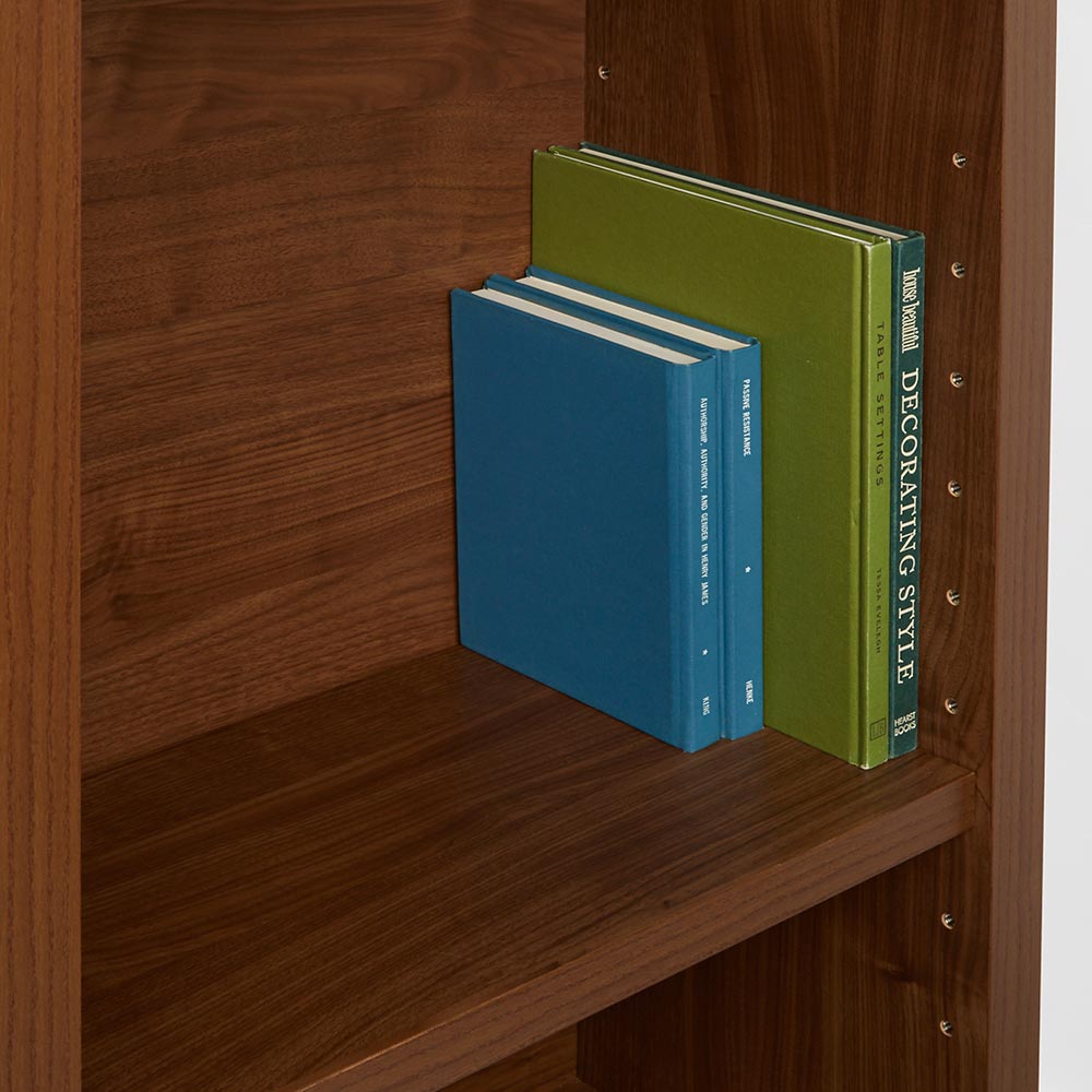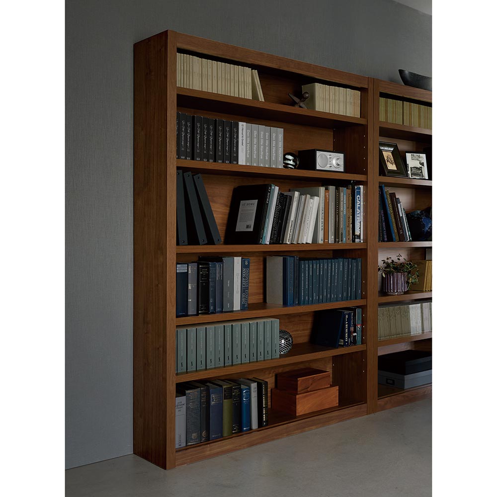 ■頑丈な棚板の厚みは3cm。見た目からも伝わる重厚感が特徴的です。■可動棚は6cm間隔で調整ができるので収納したい本に合わせて動かすことができます。