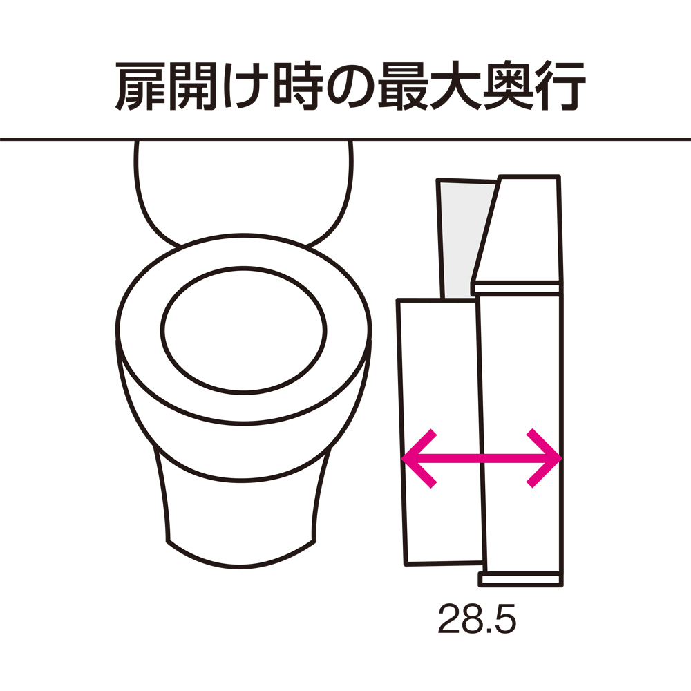 ●幅45cm奥行16cmのコンパクトサイズで、狭いトイレでも邪魔にならずに設置できます(扉を開けた時の最大奥行は28.5cm)。●こんなに小さいのにトイレットペーパーが最大12ロール収納できるので、買い置き分もしっかり収まります。