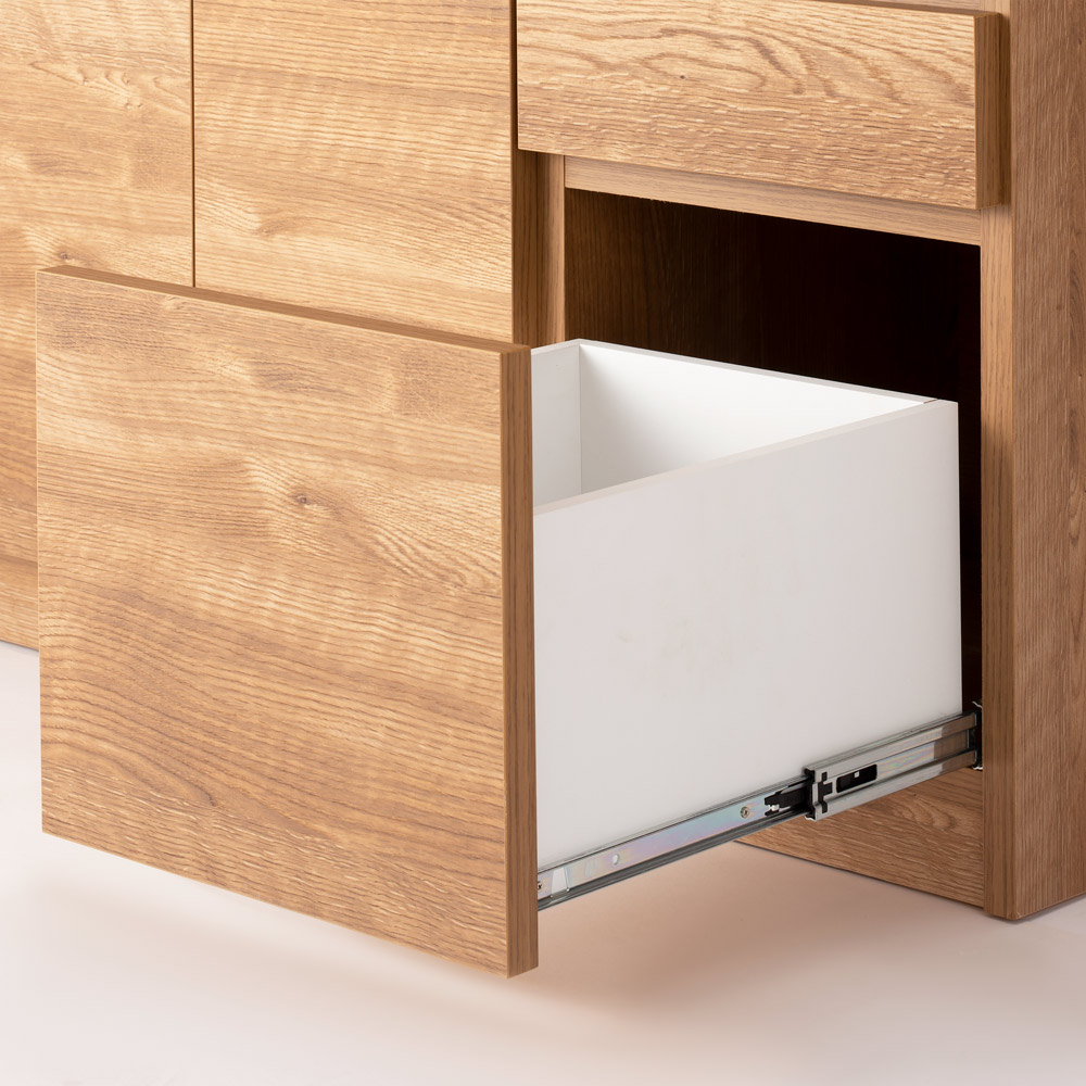 引き出しの最下段はフルスライド仕様。奥の物も取り出しやすく、開閉もスムーズです。