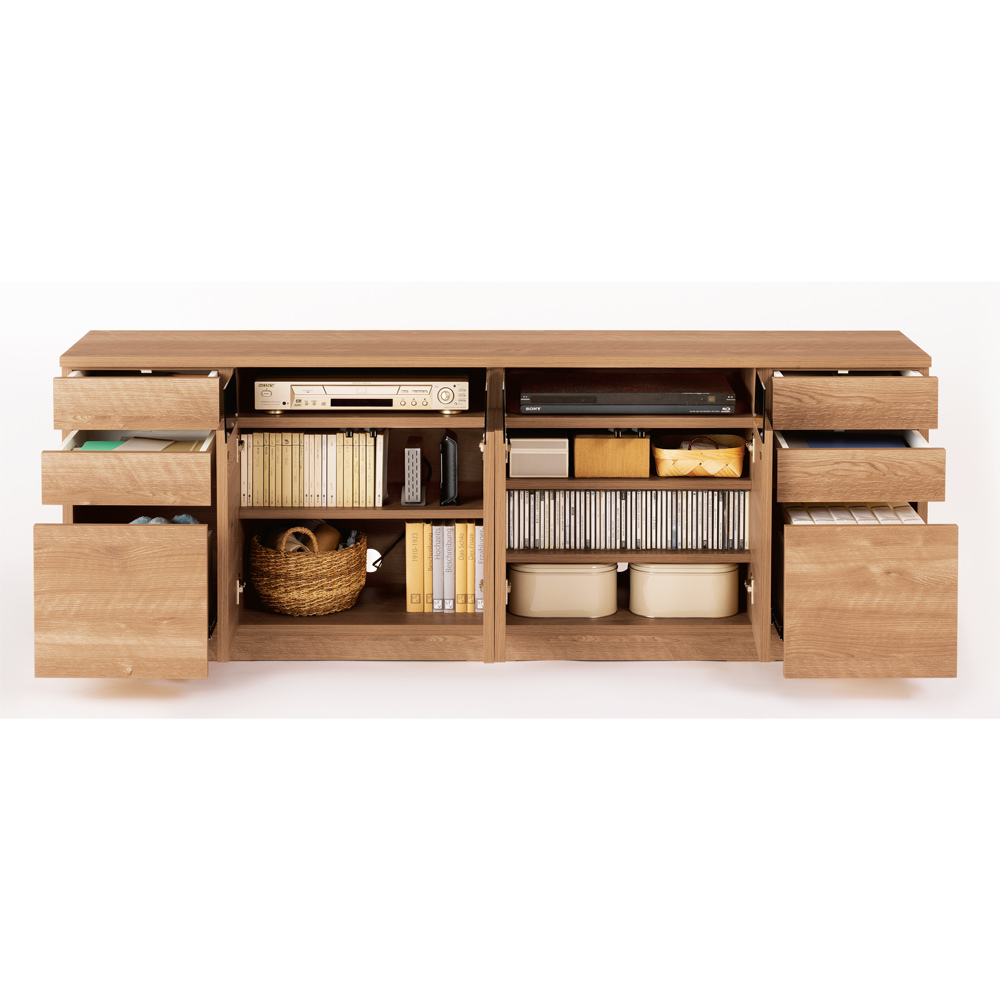 ●中央部は扉付きの棚、左右に合計6杯の引き出し付きで、大量収納できる幅173.5cmのテレビボードです。●リビングにはあまり収納家具を置かず、テレビ台と収納を兼ねることでお部屋を開放的な空間にしたいという方におすすめ。