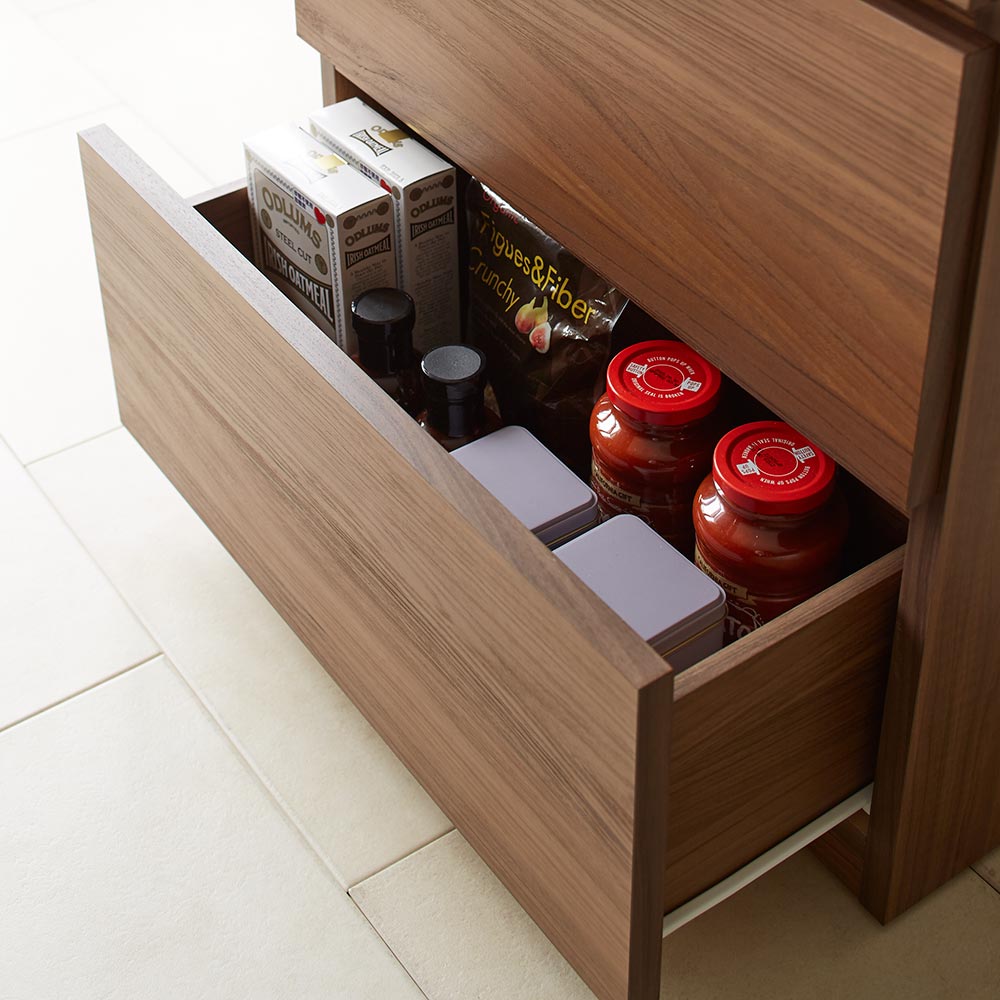引き出し最下段は内寸高20.5cm。食品ストックなどもしっかり収納できます。