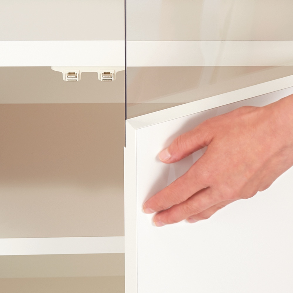 ●前面の板扉ホワイトは光沢感のあるきれいな鏡面仕上げ。