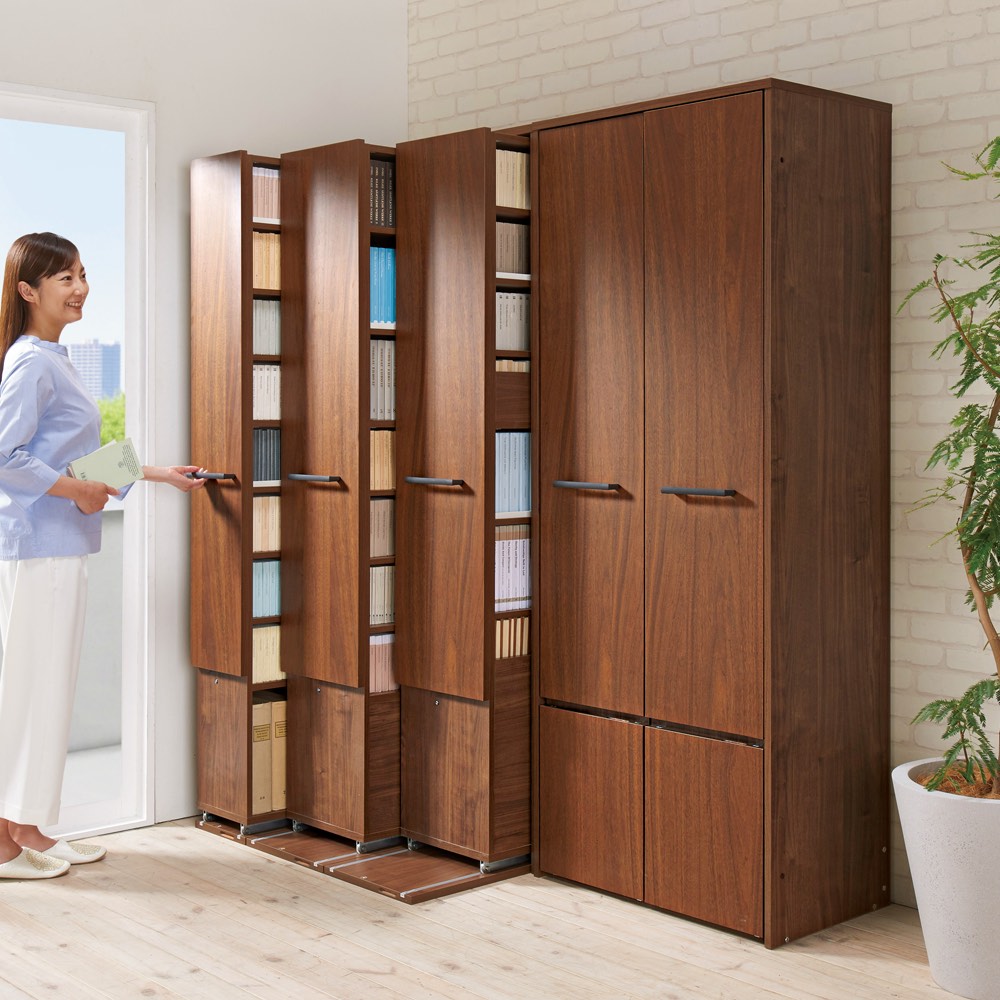 ◆使用時、本棚自体を手前に引き出すので、本の背表紙が左右両側から確認でき、本の出し入れもラクラク。