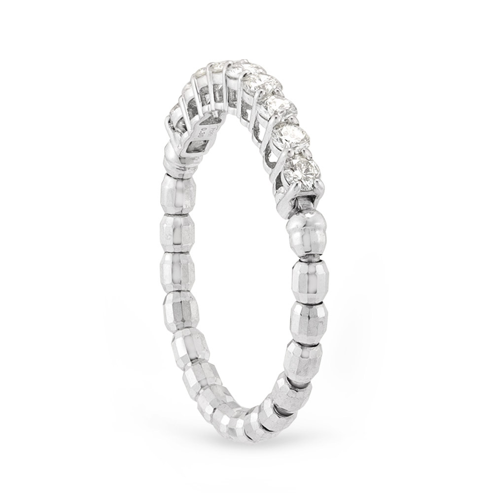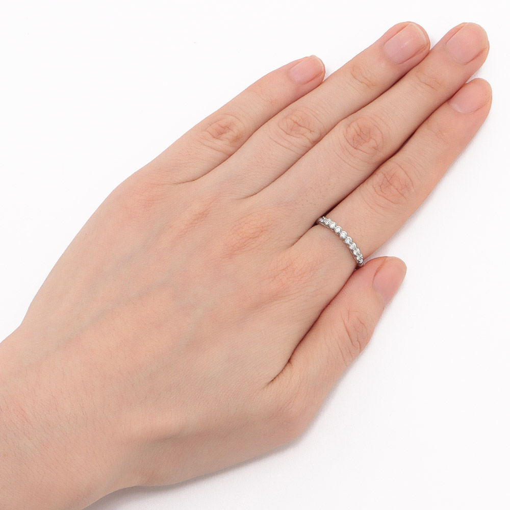 上質な0.3ctのダイヤのエタニティを、純度の高いPt950でサイズフリーのストレッチリングに。商品画像の説明