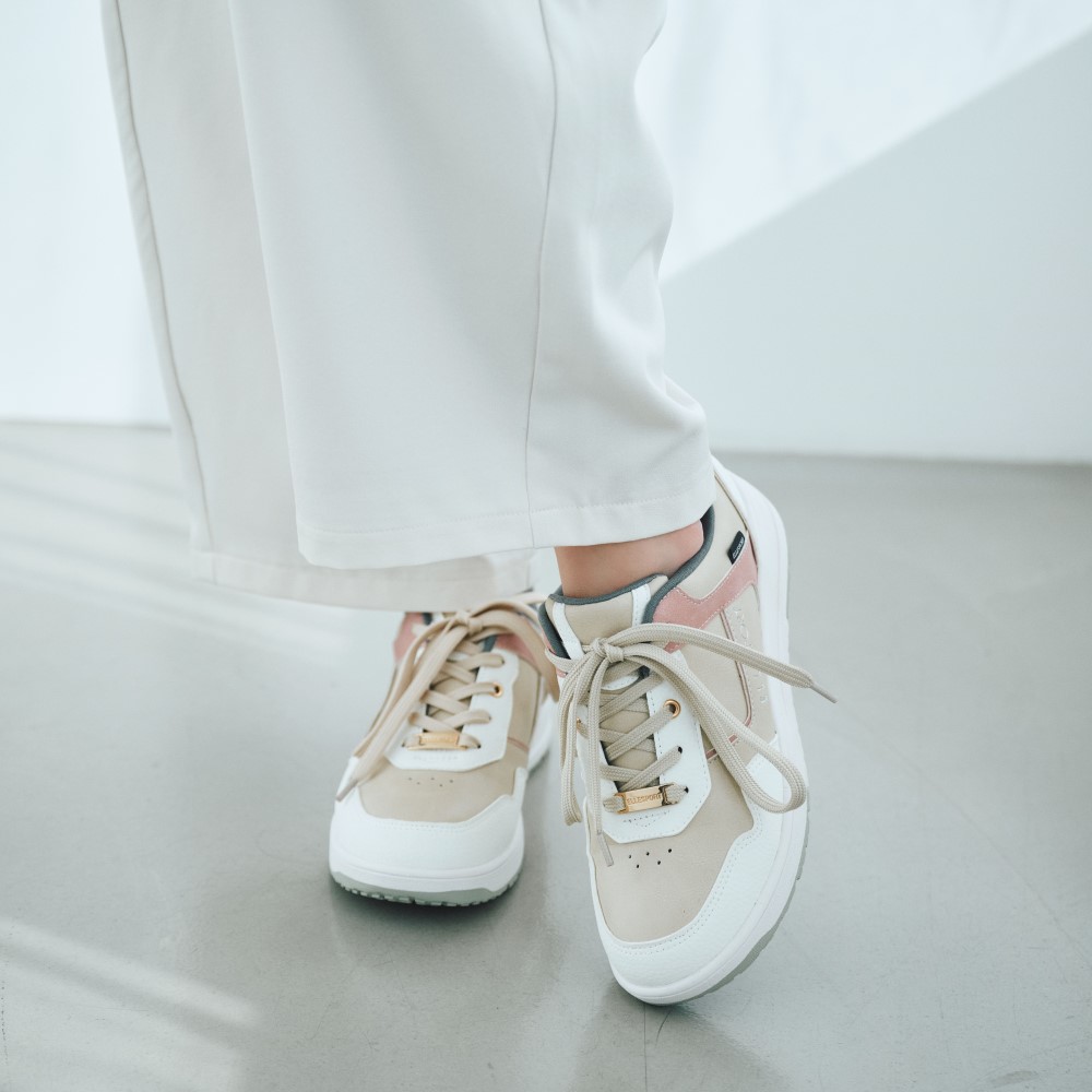 さりげないラメ使いや爽やかなコンビカラーデザインで、ラフになりすぎずファッション性をキープ。