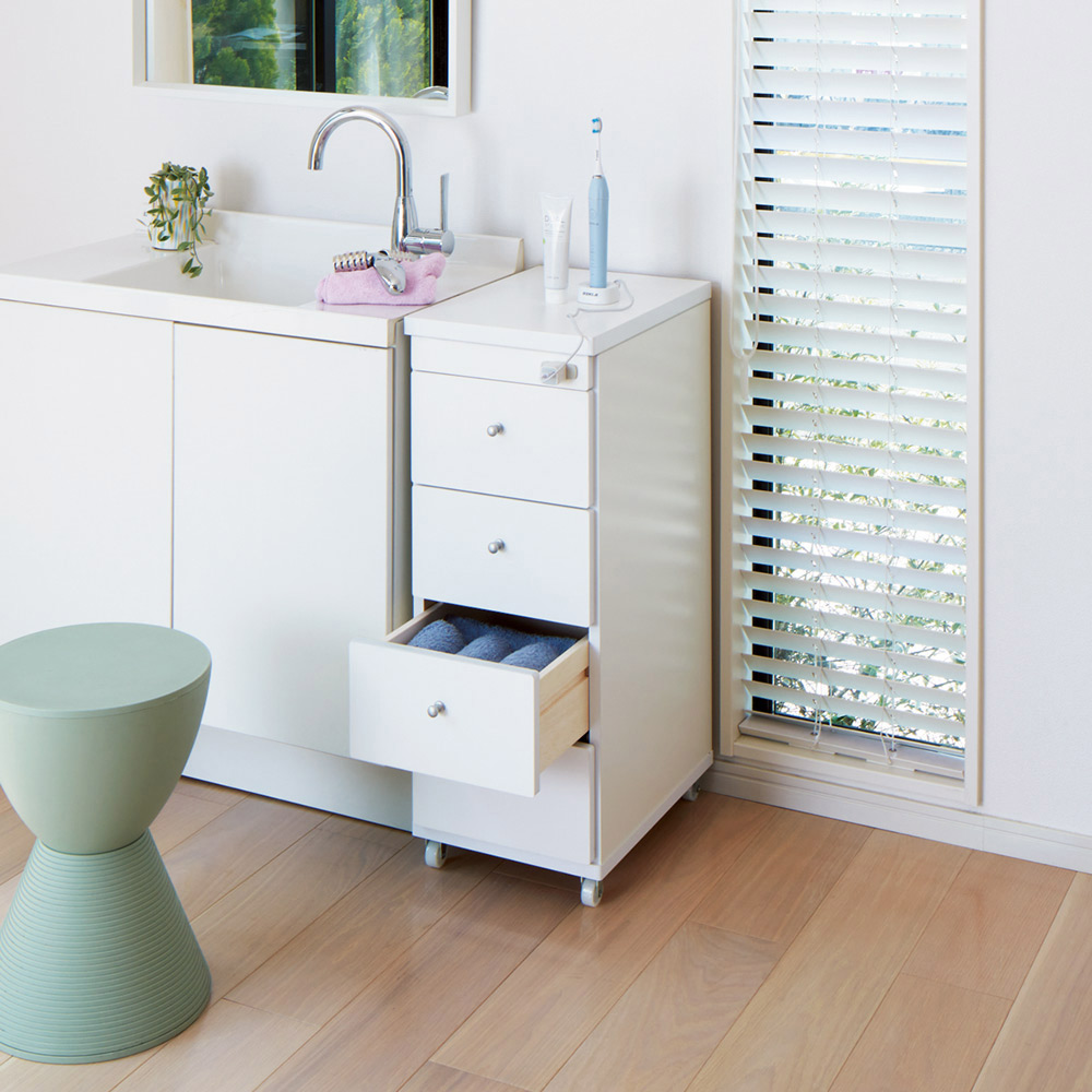 使用イメージ 高さ80cmだから、洗面台の延長スペースにも。 ※写真は別売りの奥行44cm幅30cmタイプです。