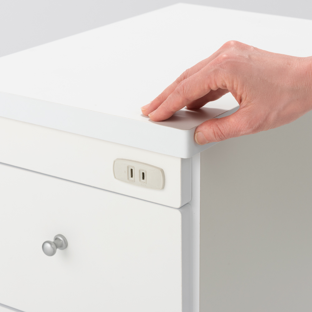 天板の角は丸みのあるデザイン。万一ぶつけても壁が傷つきにくく、お子さまにも安心の仕様です。