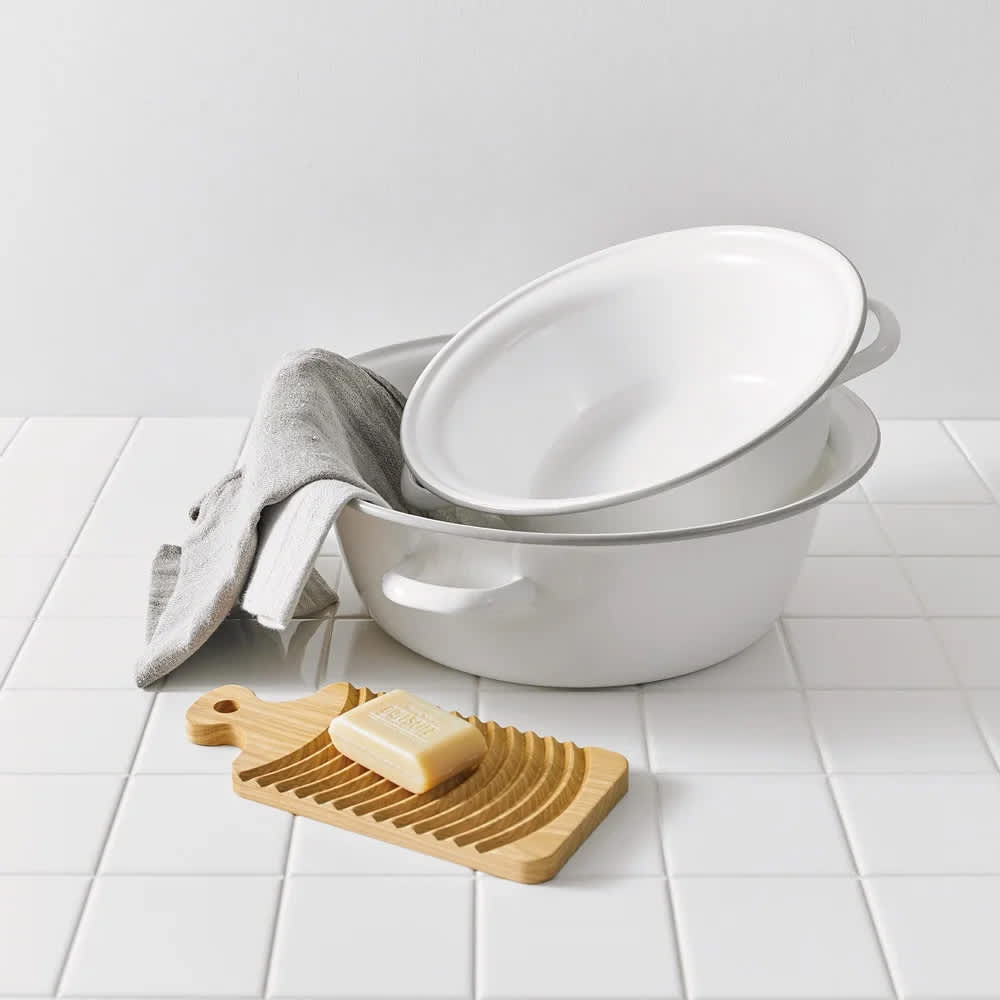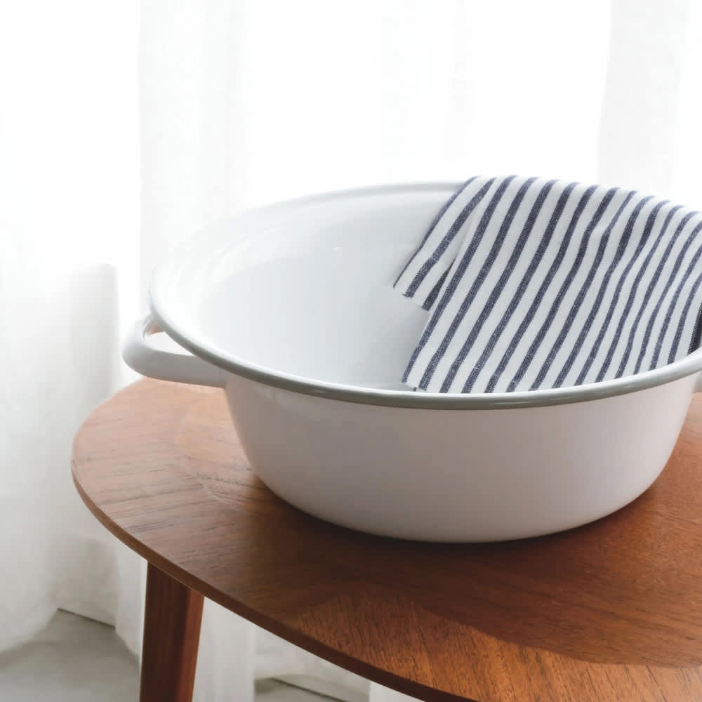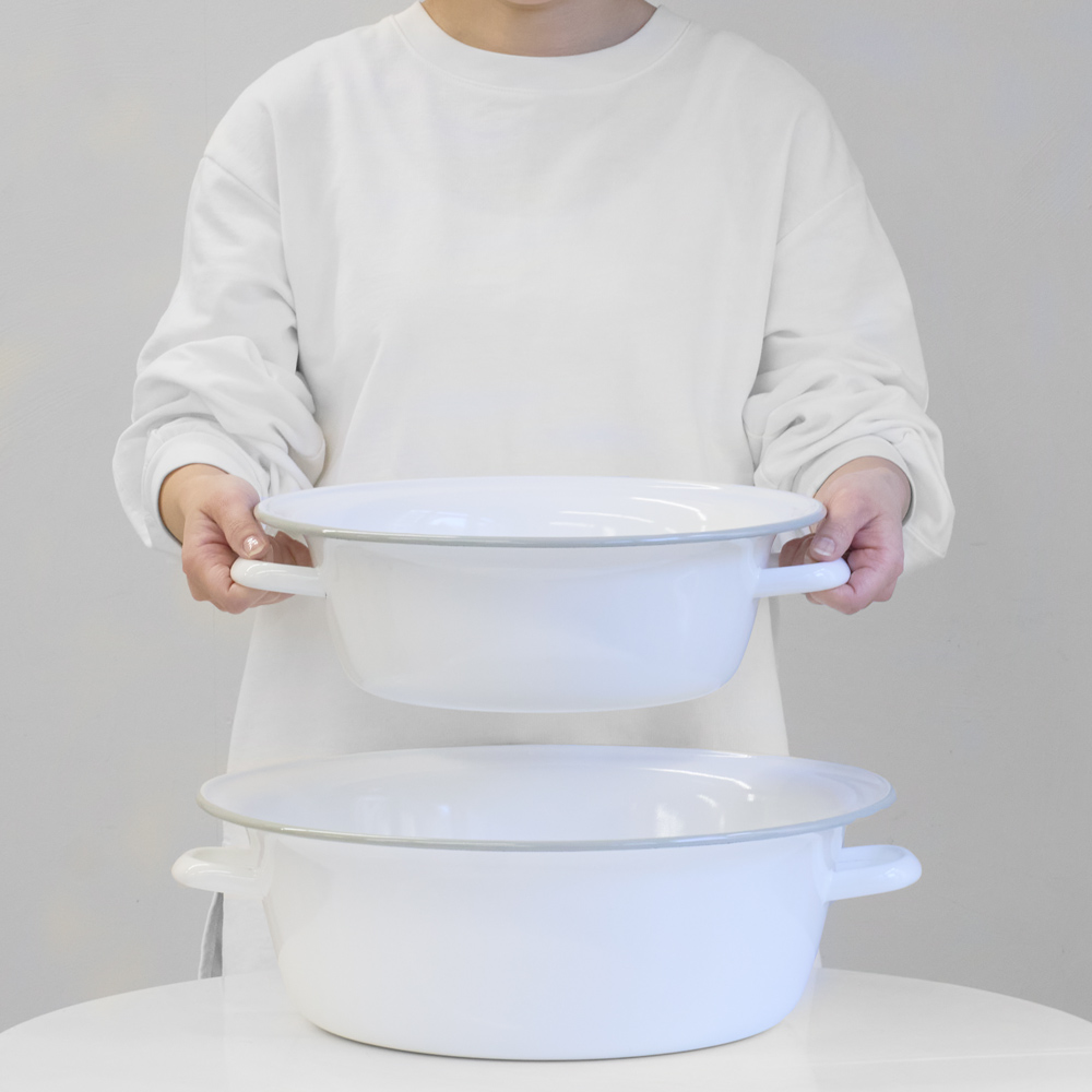 たっぷりの大きさで保温性のある琺瑯のたらいは、足湯にもぴったりなんです。お好みのアロマオイルを垂らしてゆっくりと足を温める、至福のリラックスタイムをお楽しみください。普段使いに重宝する5Lサイズと、スイカも冷やせる10Lサイズをご用意。