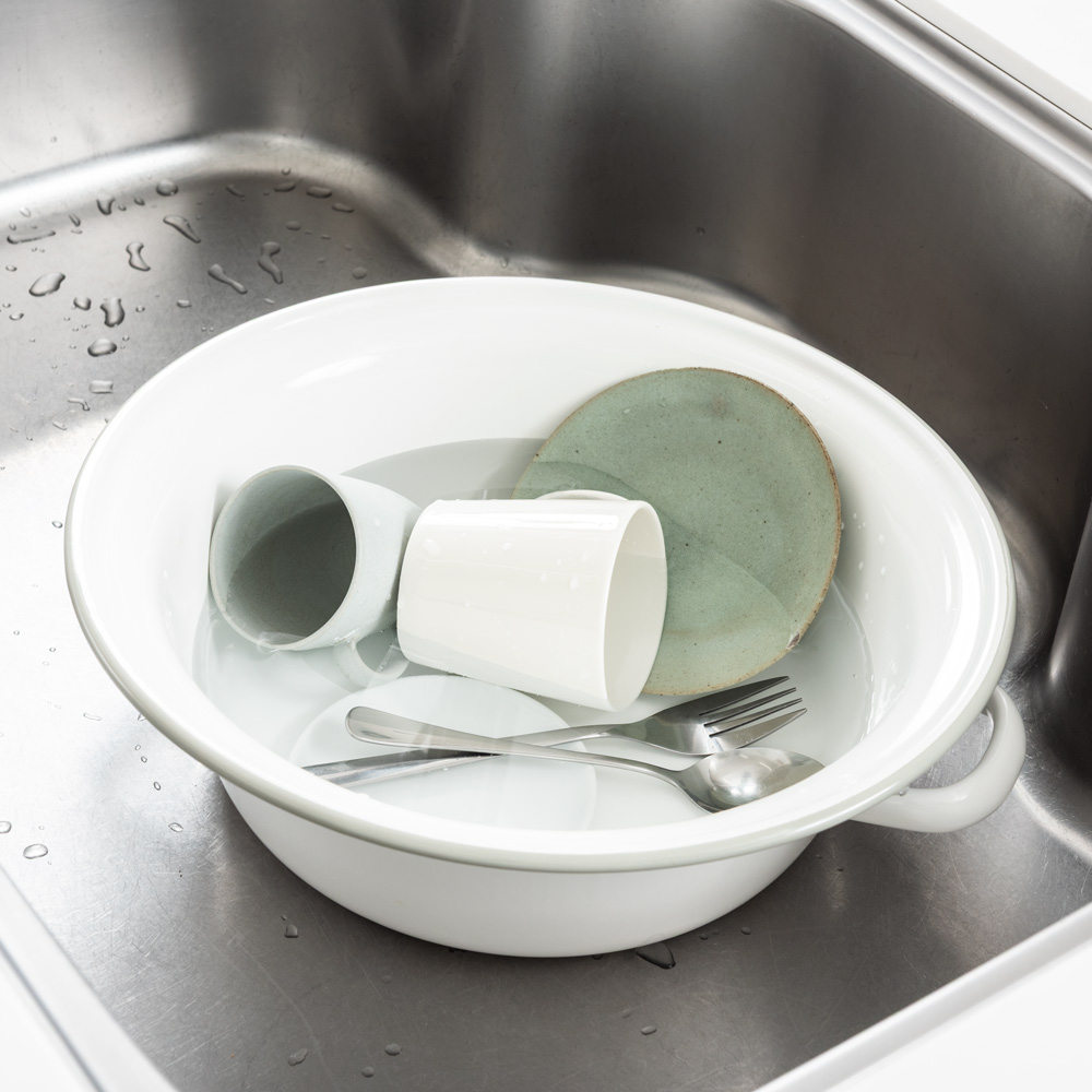 酸や汚れに強い琺瑯製なので、洗濯物の下洗いやつけ置き、漂白などにもお使いいただけます。ほどよい深さで水をたっぷり張れて、安定感があるので手洗いなどの作業もスムーズです。買ってきたものが冷蔵庫に入りきらない!そんなときも頼れます。