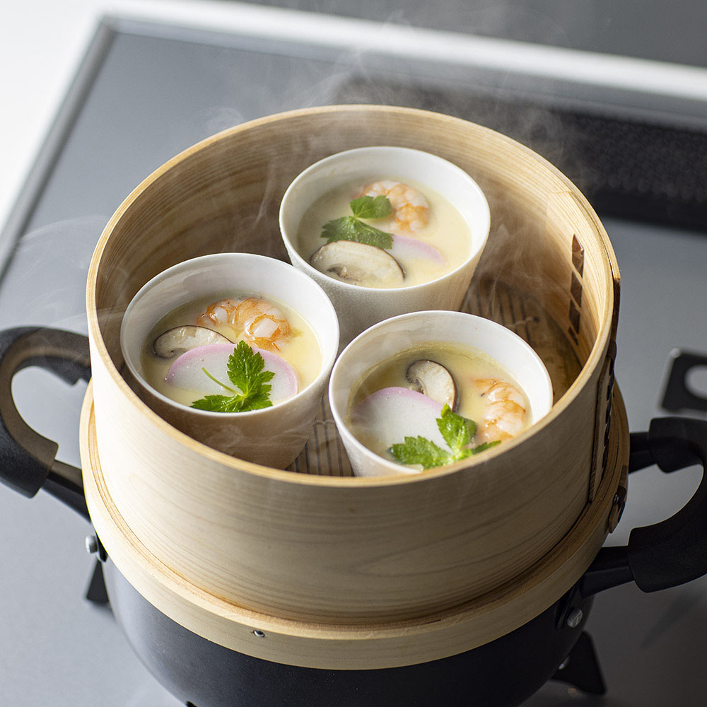 和せいろは中華せいろと比べると深型なので、茶碗蒸しの器も無理なくすっぽり。また耐久性の高いヒノキ製だから、おこわなど長時間の蒸し料理にも安心して使えます。