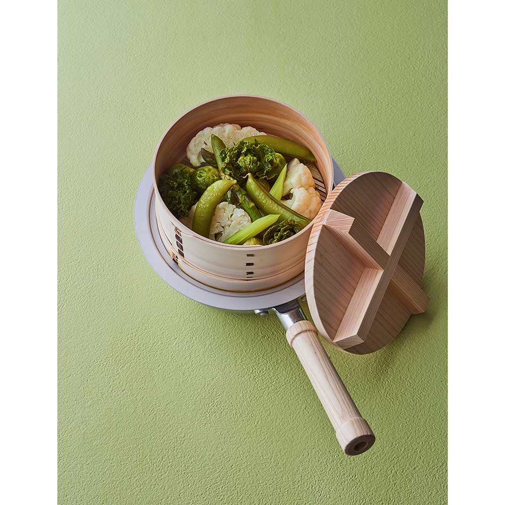 セイロの受け台を乗せることで、セイロを蒸すお鍋としてもお使いいただけます。受け台、セイロは関連商品をご覧ください。