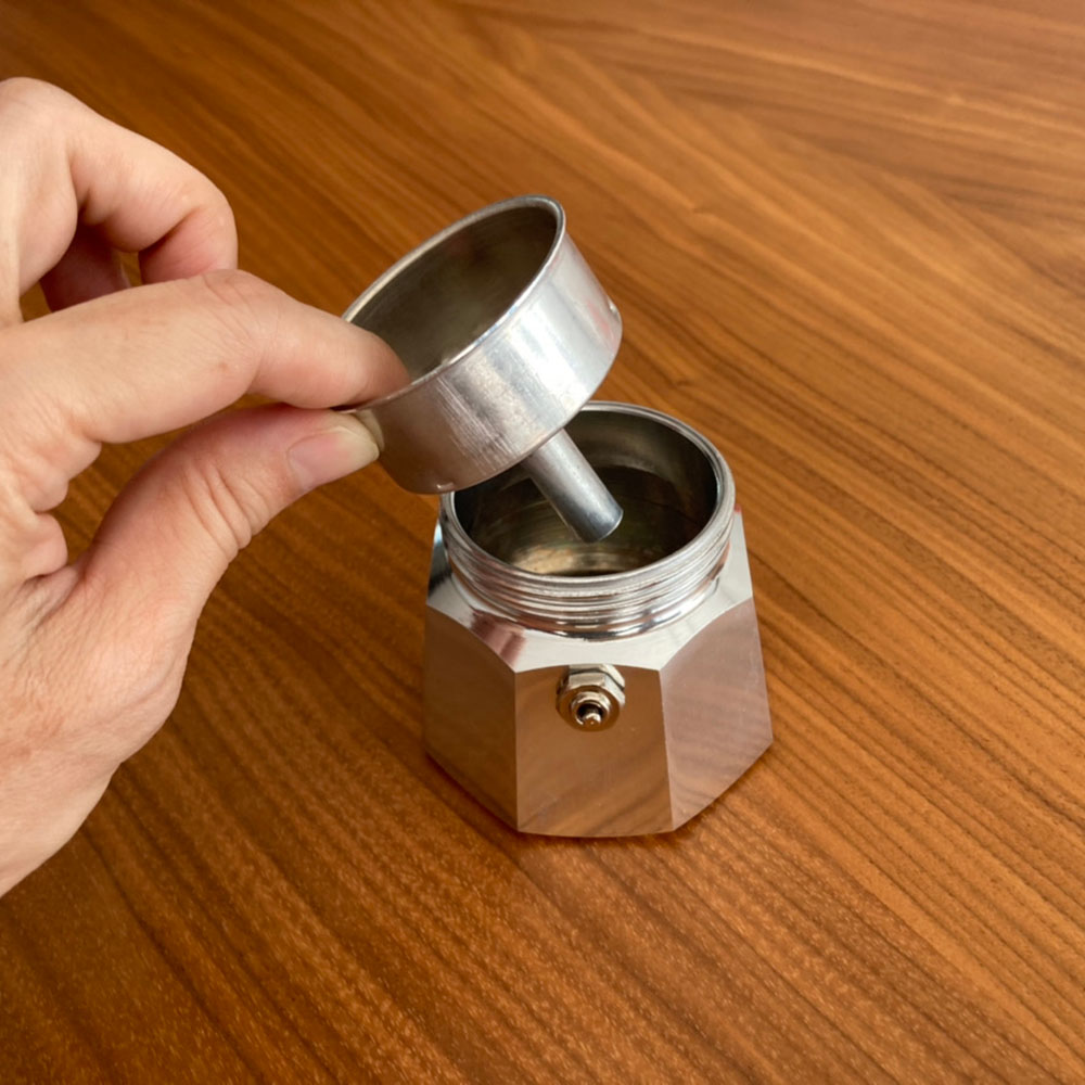 直火にかけるだけで本格的なエスプレッソが作れるこちら。主なパーツは・水を入れるボイラー(下の部分)