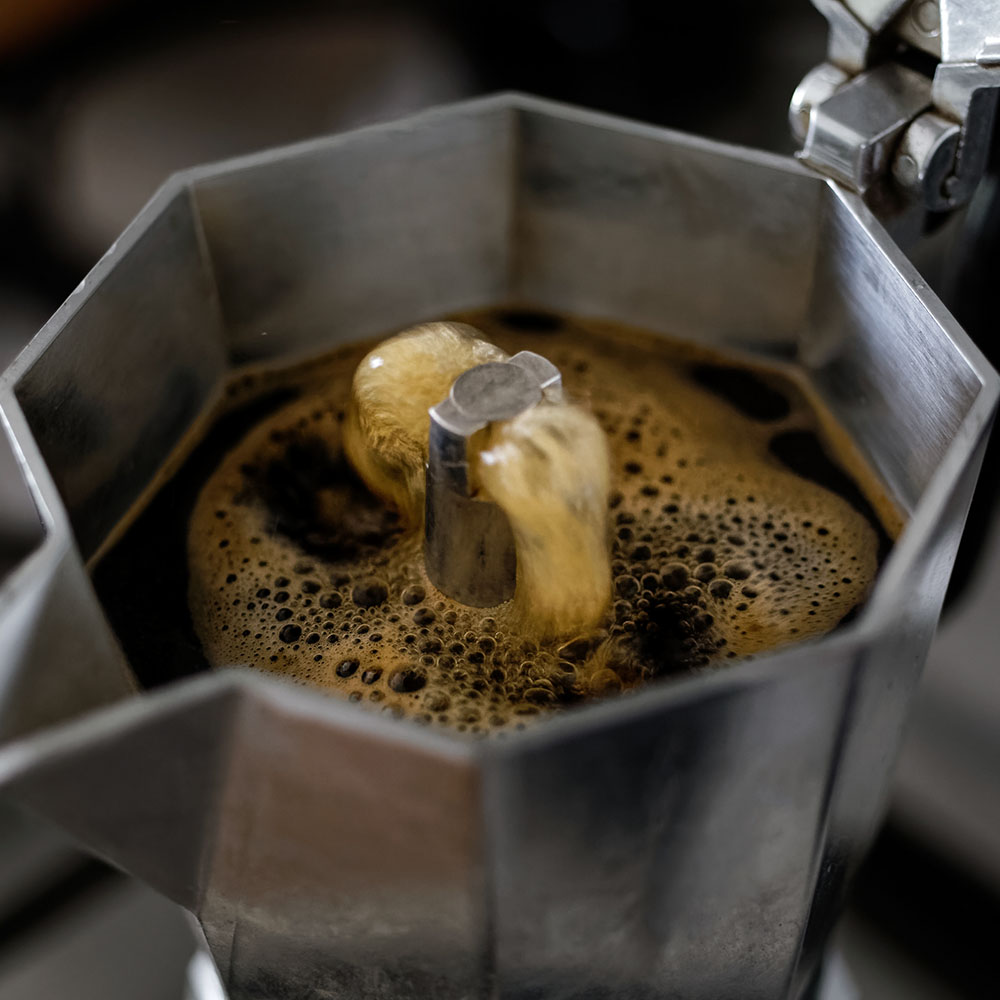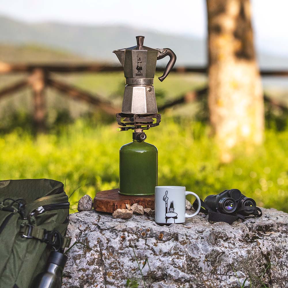 下のボイラーに水を入れ、バスケットに挽いた中細挽きのコーヒー粉を擦切り一杯入れて、直火に掛けるだけ。数分後にはポコポコとエスプレッソがサーバーに上ってきて素早く完成!エスプレッソの名の通り、早く完成しますので忙しい朝にもサッと作れます。キャンプで最高の一杯を楽しめます